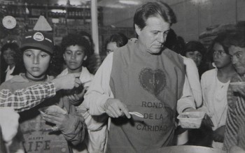 Ronda de la Caridad: entrega de comida en Plaza Miserere, Ciudad de Buenos Aires. Década del 90.