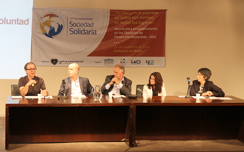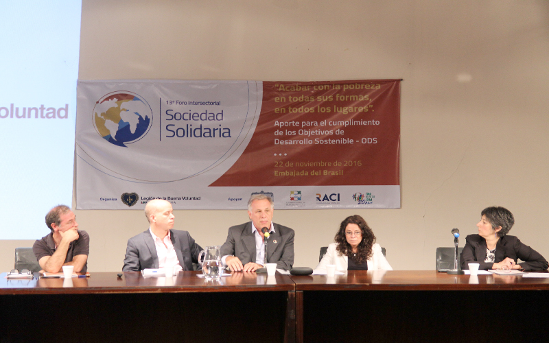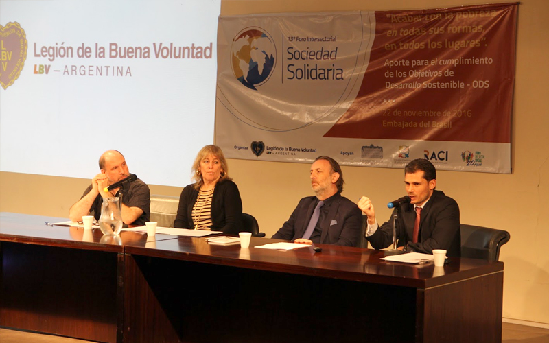 La Legión de la Buena Voluntad, que cuenta con Estatus Consultivo General junto al Consejo Económico y Social de la ONU desde 1999, asume que el cumplimiento de los Objetivos de Desarrollo depende de cada uno de los actores sociales que integran las comunidades. Así, hace trece años ideó el Foro Intersectorial Sociedad Solidaria, con el fin de proponer un intercambio enriquecedor y la generación de ideas para alcanzar las metas planteadas. En los distintos países donde la LBV tiene presencia este Foro es una oportunidad de encuentro e intercambio de gran valor.