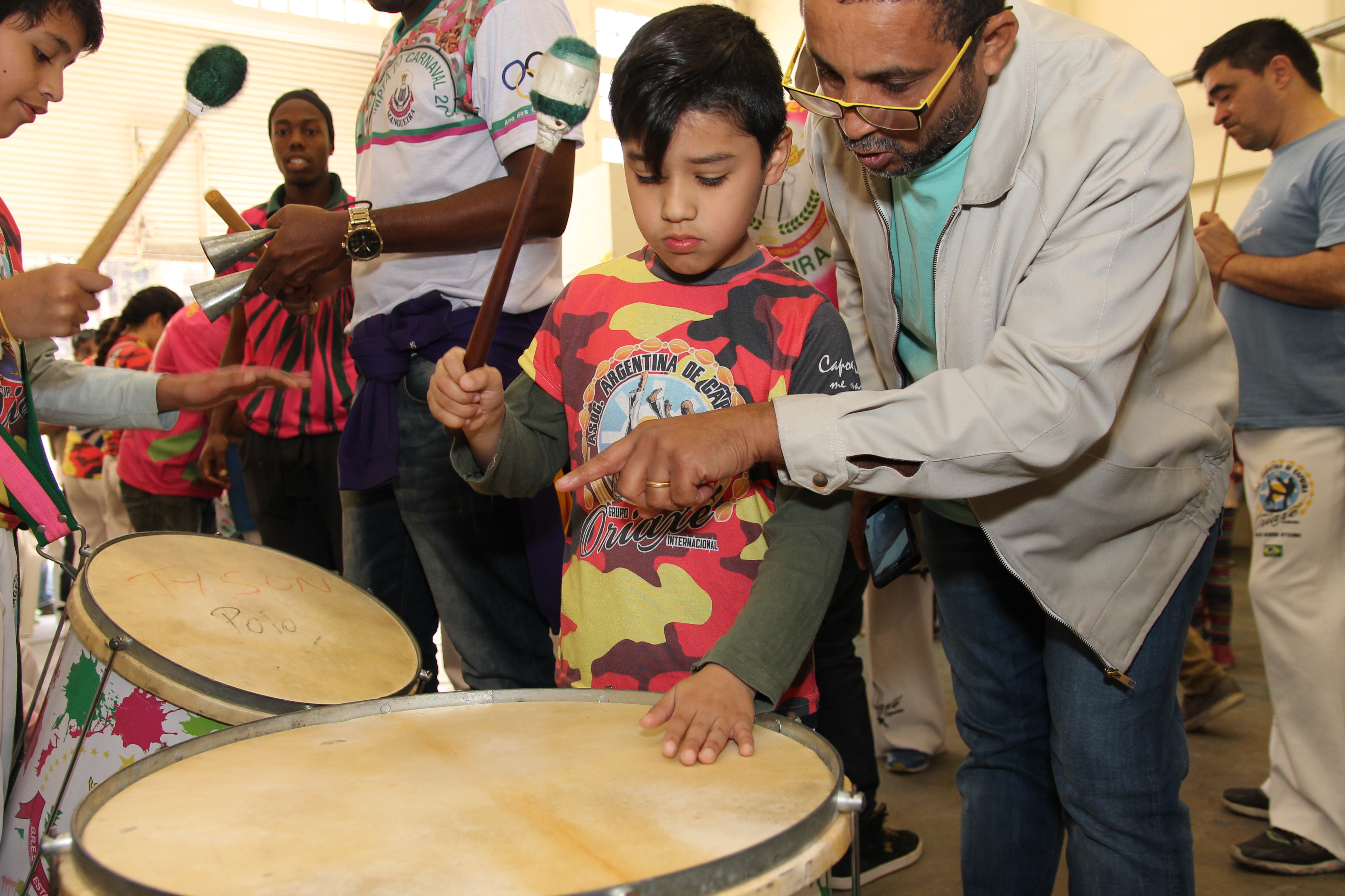 Al rato, acompañados por los profesores de la Asociación Argentina de Capoeira, chicos y grandes se integraron en un taller de sonido, ritmo y alegría, de la mano de los artistas visitantes. Los niños aprendieron percusión y danza, entre risas y juegos. Y tras un almuerzo compartido, varios adultos llegaron desde distintos puntos de la ciudad motivados por la presencia de la Escola, para sumarse a una tarde de integración cultural destinada al recuerdo.
