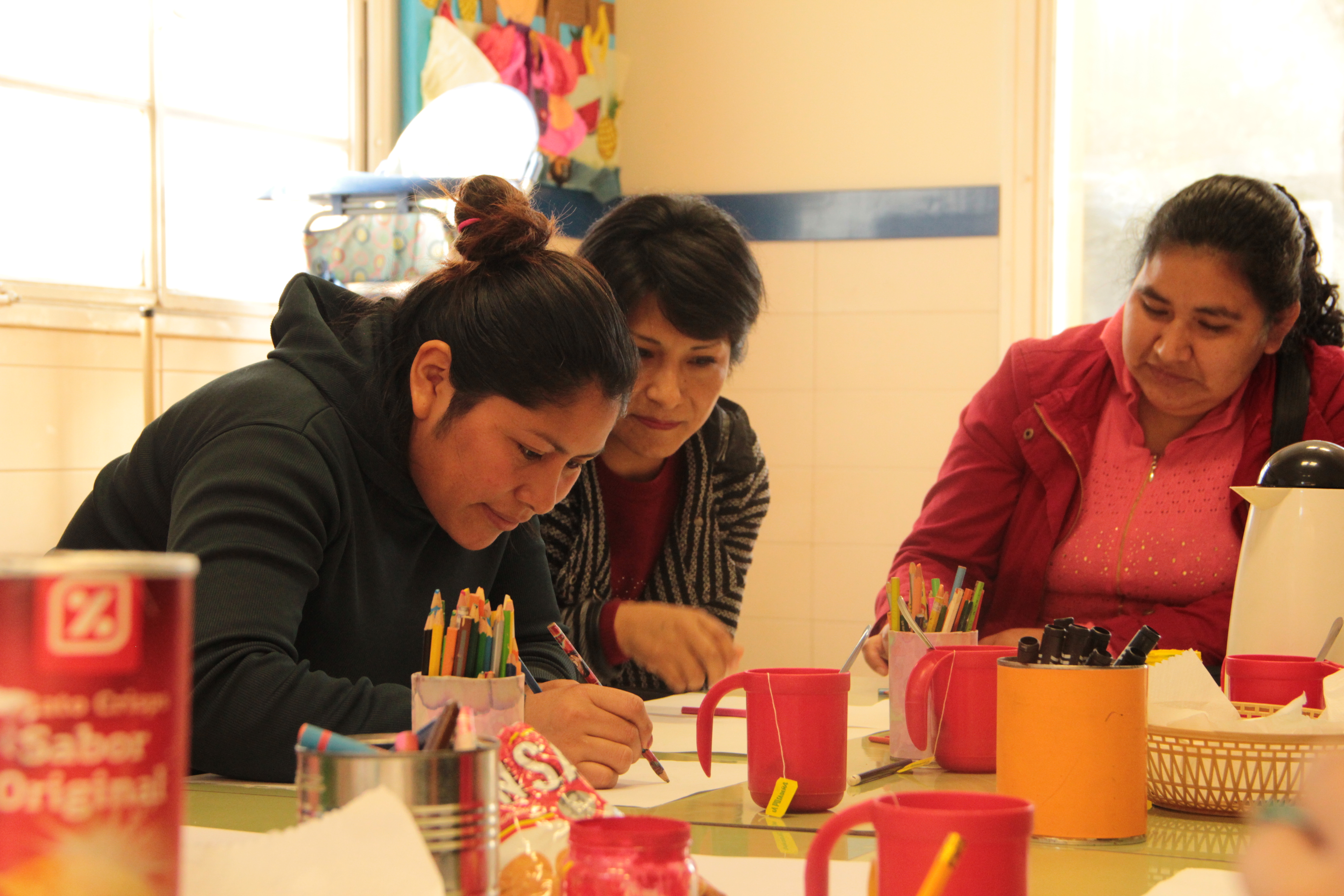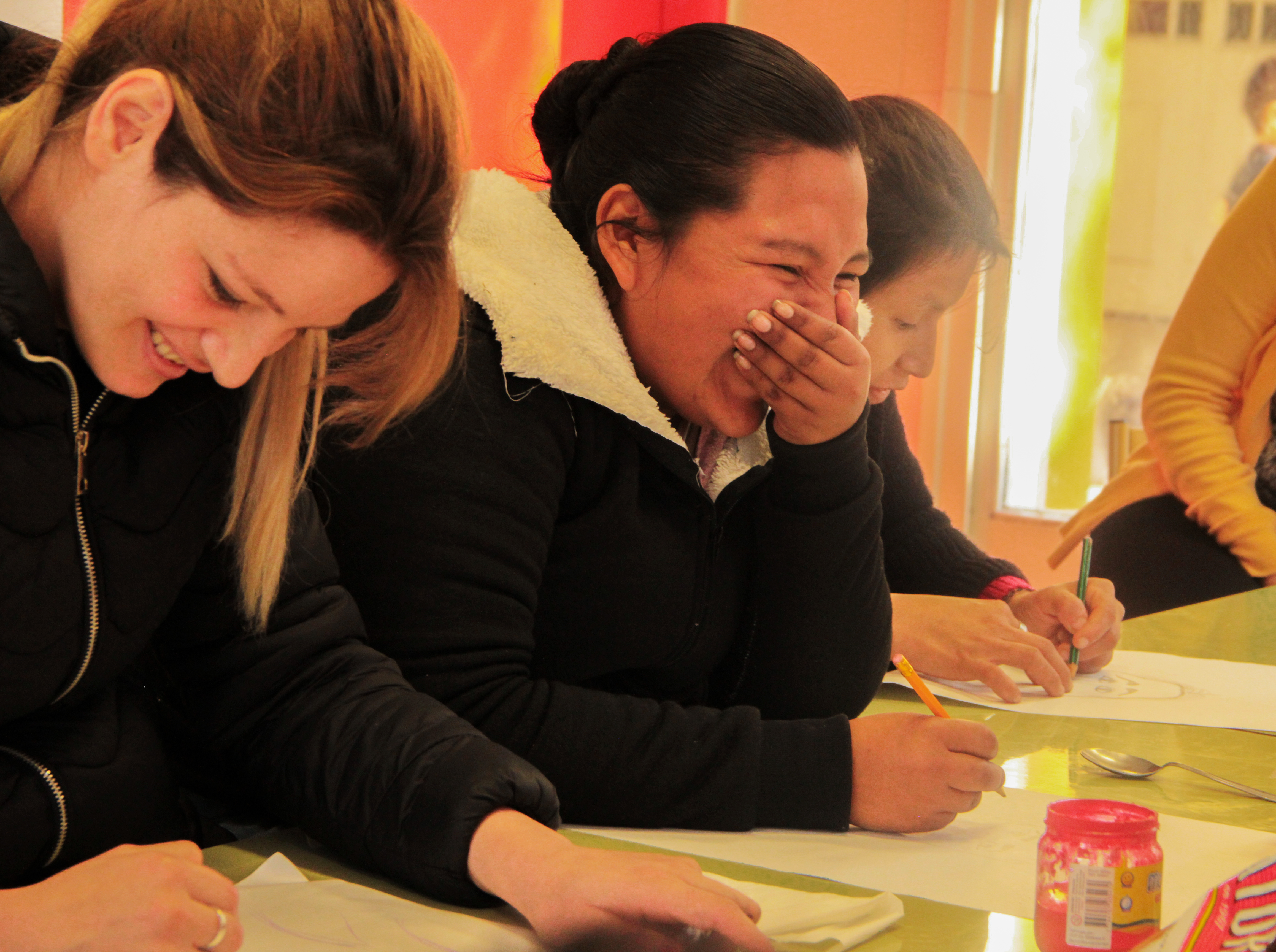 A fin de sellar el comienzo de este auspicioso ciclo, las madres se dibujan unas a otras… Los colores proyectan en el papel la ilusión del tiempo por venir. En el patio, los niños y niñas ríen, corren, juegan sus juegos infantiles.